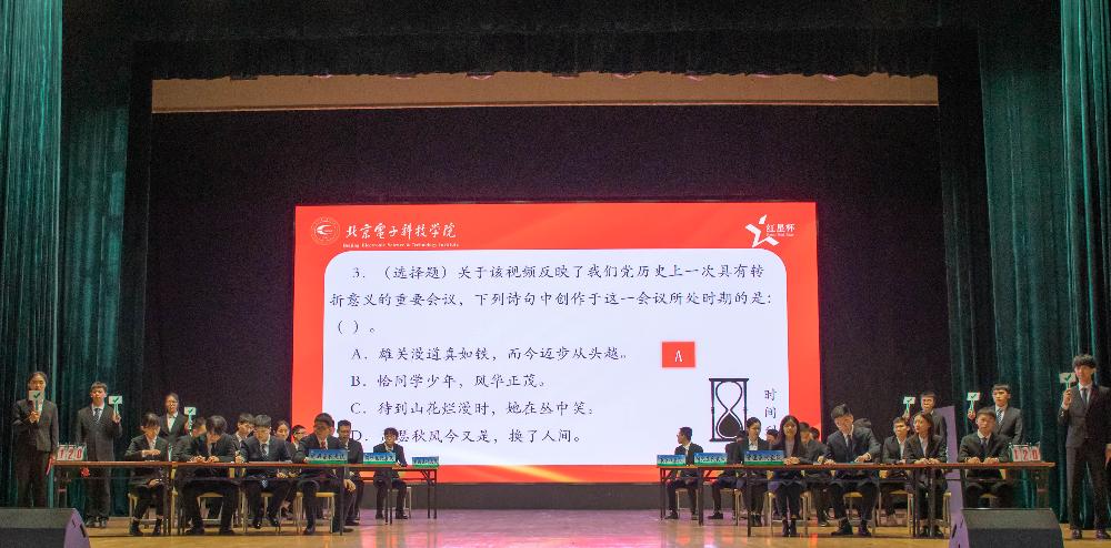 作为学院品牌学生活动和“红星杯”红色文化系列比赛的重要赛事,本届比赛分为“初露锋芒”“眼疾手快”“挑战巅峰”“勇立潮头”四个环节,以习近平总书记重要讲话、宪法法律、党章党规和团史为考察内容,设置了必答题、抢答题、即兴演讲等多种题型,新增判断军团战、极限挑战赛等创新题型,并巧妙融入由学院大者剧社自编自导自演的情景剧视频题,进一步提升了比赛的理论性和观赏性,以赛促学、以赛验效,展示了全院师生学习习近平新时代中国特色社会主义思想的显著成果和学院学生的综合素质。