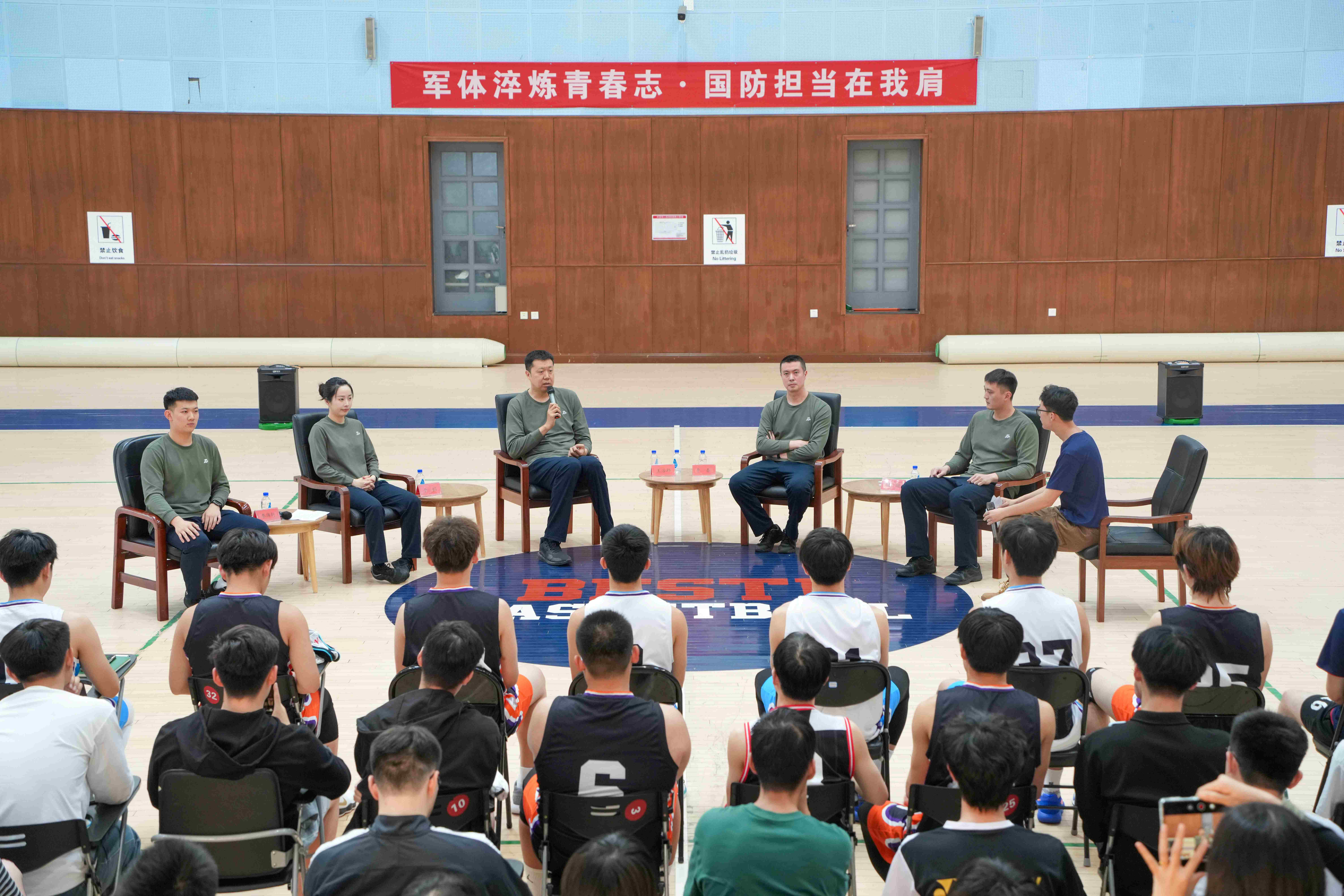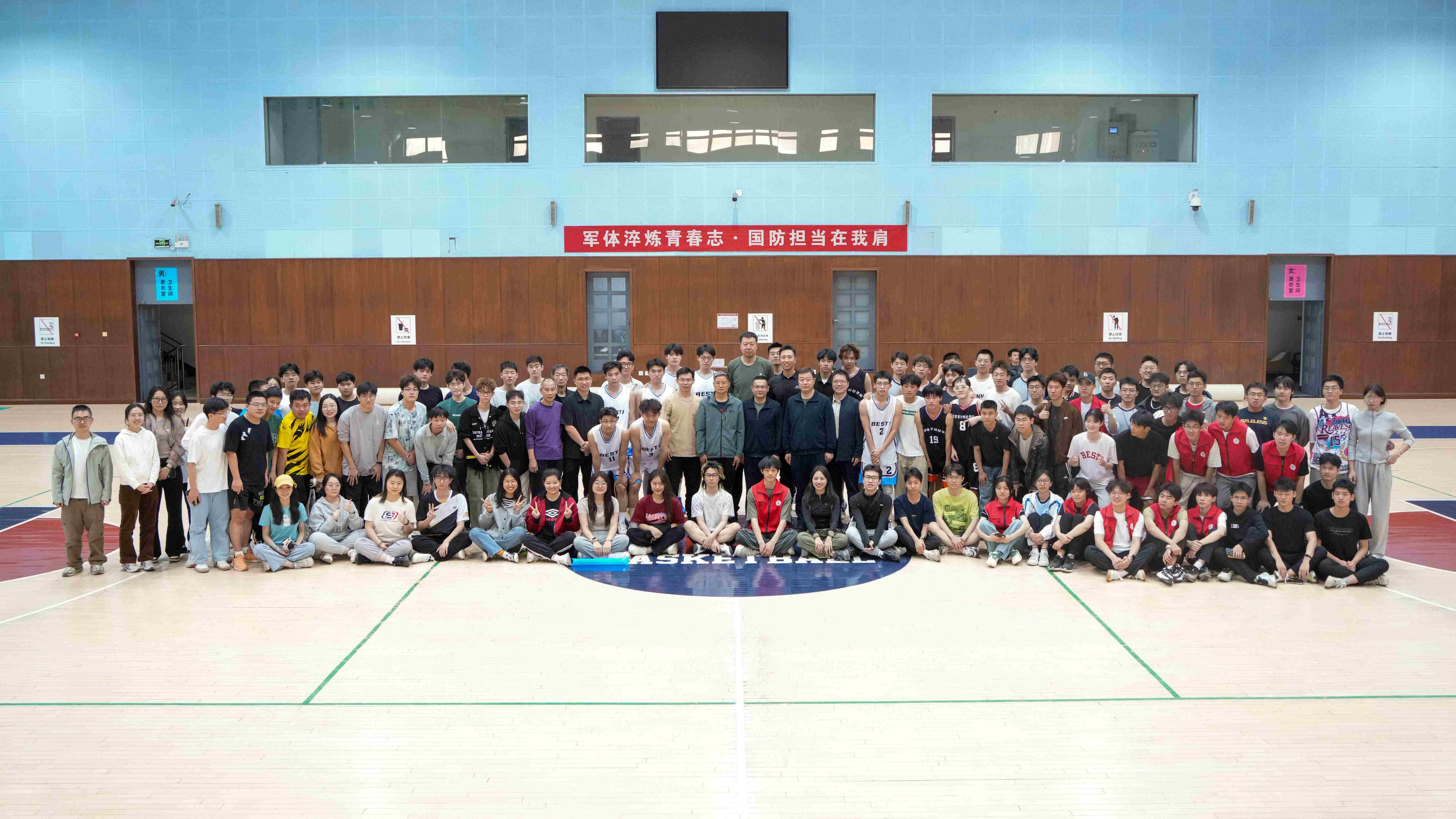 为激发师生参与体育运动的热情,弘扬中华体育精神,厚植师生爱国主义情怀422下午电科院举办“军体淬炼青春志·国防担当在我军体专家进校园活动中央军委训练管理部军事体育训练中心王治郅、李春、杨聪、于懿、李沛轩等5专家来院交流,400名师生现场观摩。