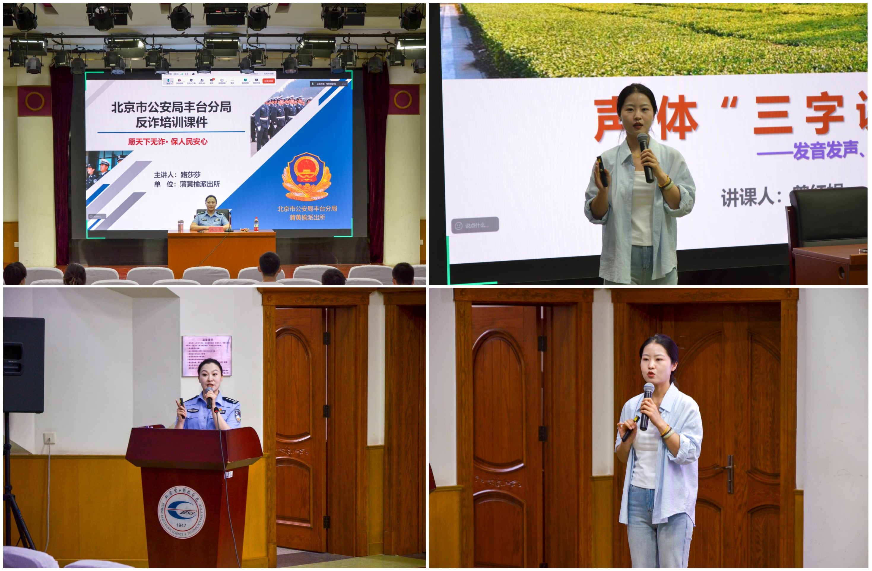 525上午电科院开展丰台区反诈宣讲团专题培训,130同学参加培训培训聚焦“专业赋能+通识普及”,邀请丰台公安分局蒲黄榆派出所反诈专责民警路莎莎,结合辖区典型案例剖析新型诈骗手法;邀请北京汽车博物馆资深讲解员曾红娟围绕受众心理分析与宣讲技巧提升开展反诈专项指导。本次培训通过理论讲解与情景模拟相结合的形式,系统提升参训学员的实务能力,激励宣讲团志愿者以行动诠释担当,为构建平安校园和平安丰台贡献青春力量