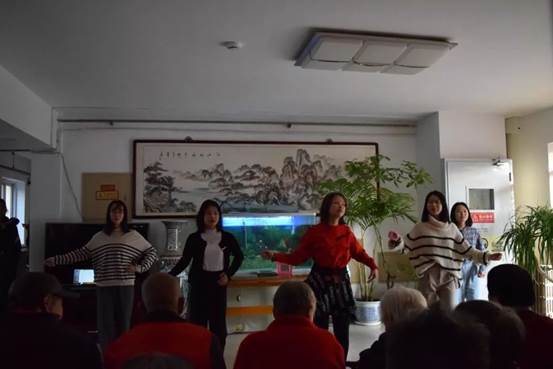 在慰问演出上,同学们为老人们带来了一场由乐器和舞蹈组合的盛宴,同学们发挥自己的特长,在这个冬天,用自己动听的歌声和优美的舞姿,带给老人们温暖和快乐。
