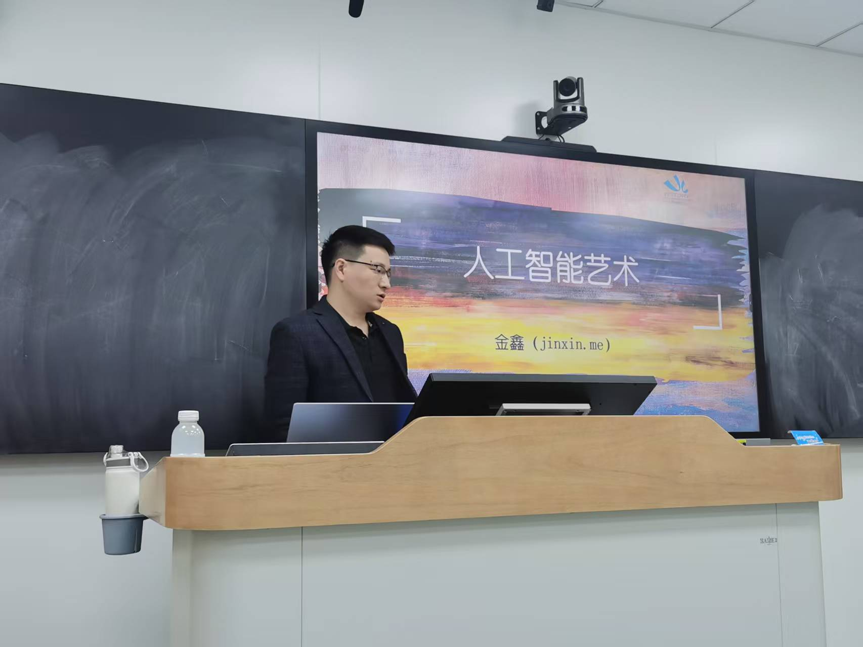 金鑫教授首先介绍国内外人工智能艺术的发展概况,进而详细介绍了人工智能摄影、人工智能绘画和人工智能音乐等方面的发展趋势,旨在探讨人工智能技术在艺术领域的应用与发展。他分享了在人工智能艺术领域的研究成果和见解,为师生们打开深入了解人工智能与艺术结合的崭新视界。
