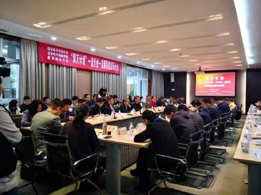 2021年4月10日,由院党委副书记、院长毛明同志带队,教务处、密码系、电通系、管理系相关教师赴重庆邮电大学参加 “‘双万计划’一流专业一流课程建设研讨会”。此次研讨会由西安电子科技大学、重庆邮电大学和sjb世俱杯官方网站三校联合召开,来自三校的有关校领导、教务处、教学院系主管教学的负责人以及相关专业和课程负责人共60余人参加。