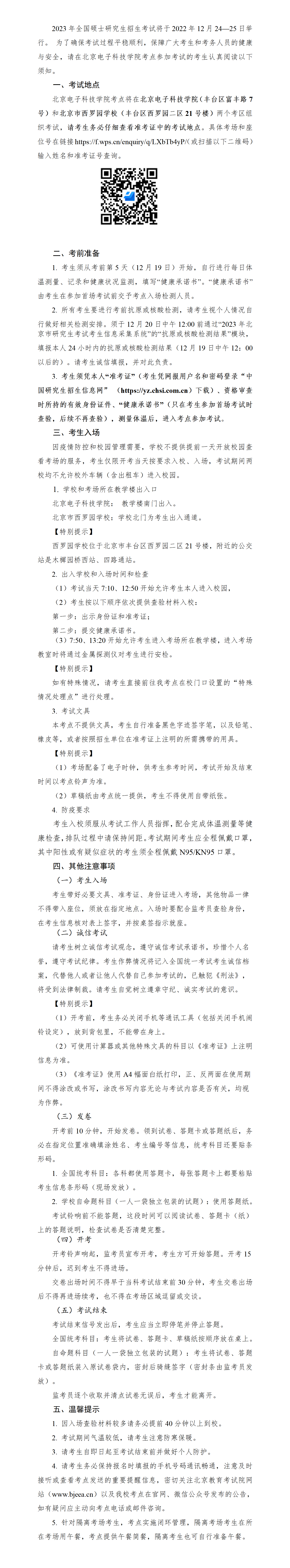 2023年全国硕士研究生招生考试sjb世俱杯官方网站考点(1118)考生须知