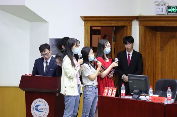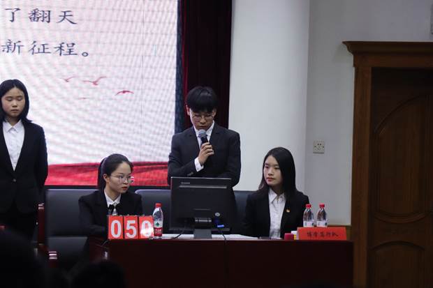 第一环节结束,钱韵如、肖郅宇、王思溦、苏星宇四名同学为我们带来的诗朗诵《我的祖国》,不仅缓解了选手们紧张的心情,也在中国共产党百年华诞来临之际表达了对党的敬爱之情。