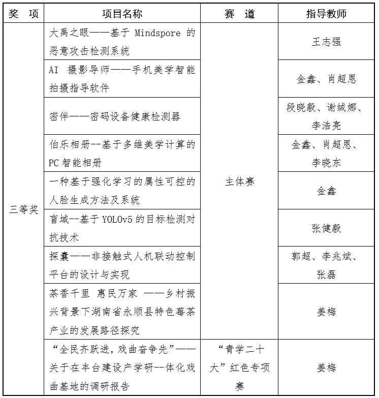 近日,“青创北京”2023年“挑战杯”首都大学生课外学术科技作品竞赛落下帷幕。经评委会评审,电科院推荐的70项作品中,1项作品获评特等奖,4项作品获评一等奖,22项作品获评二等奖,29项作品获评三等奖,获奖数量和获奖比例均创历史新高,这是对我院创新实践教育教学成果的最好检验,也是进一步激发青年学子创新热情、营造浓厚校园学术氛围的有力助推。
