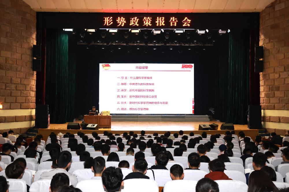 10月25日下午,学院在文化艺术中心举办本学期第二场形势政策报告会,邀请中国科学院自然科学史所副研究员王公博士以“弘扬科学家精神,凝心聚力奋进新征程”为题作专题报告,全院2000余名学生聆听报告。