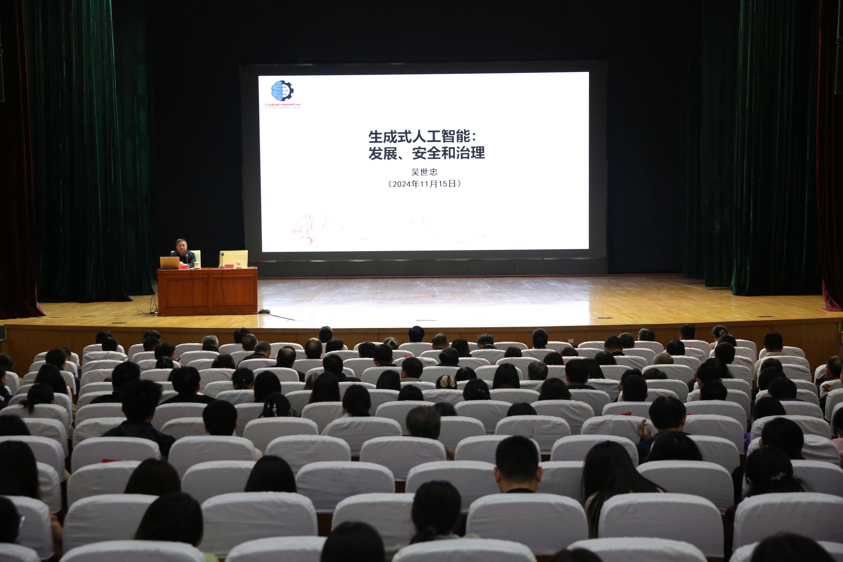 11月15日下午,电科院邀请中国工程院院士、国家保密局科技委主任吴世忠以“生成式人工智能:发展、安全和治理”为题作学术报告。吴院士围绕“人工智能发展势不可挡”“风险隐患复杂严峻”“安全治理牵动世界”“中国治理大国智慧”等4个方面进行专题辅导。此次报告帮助广大师生深刻认识了当前生成式人工智能的安全形势和发展趋势,加深了对习近平总书记关于人工智能的重要论述的理解把握,进一步增强了师生积极推进我国人工智能发展的责任感和使命感。院领导、各部门班子成员、专任教师、学生代表700余人聆听了报告。